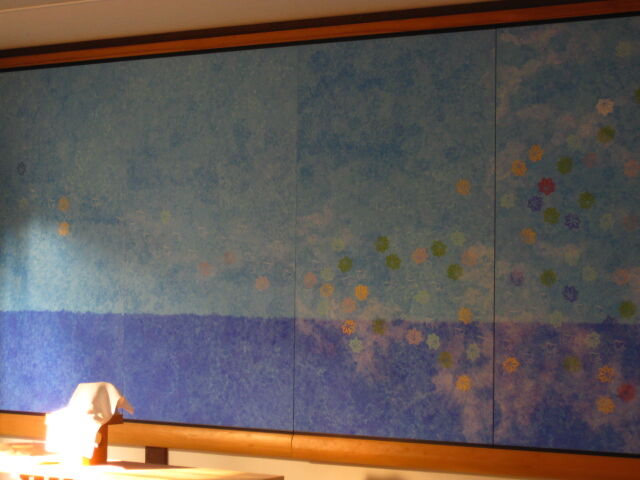 本殿横の部屋の中にあった色やさしい絵。詳細は不明