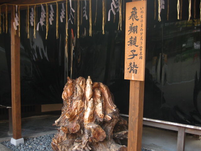 鳥居の真ん中にご覧のような石柱がある「神の使い・いのしし」と。