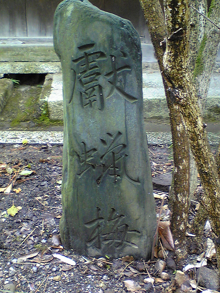 両側には随神/ずいしん(貴族の護衛に従事した官人)の像が置かれ、正面には菅原道真を褒め称える言葉「