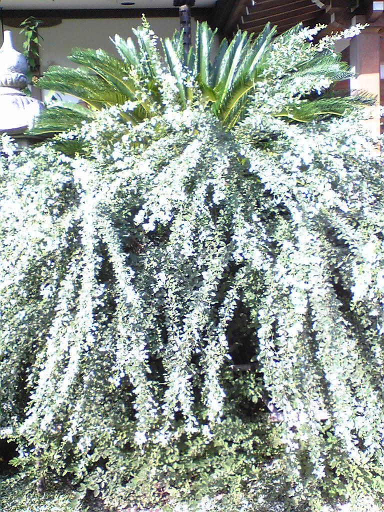ソテツと白い萩、うしろが本堂