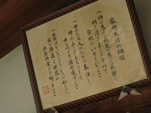 拝殿の真正面上部に掲げられた網領