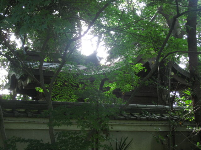 境内から外に出て、曽我川の堤防沿いから本殿を見る。