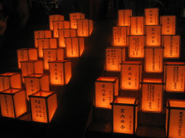 中元万燈籠の燈篭を近くで見ることが出来る場所には500円が必要、それ以外は無料で拝観できる。