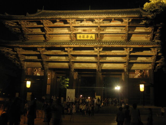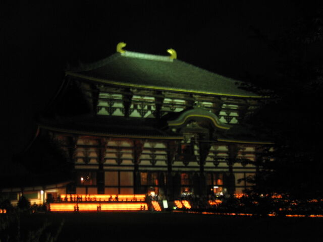 暗闇に浮かび上がる大仏殿が遠くからも確認できる。