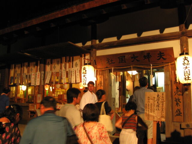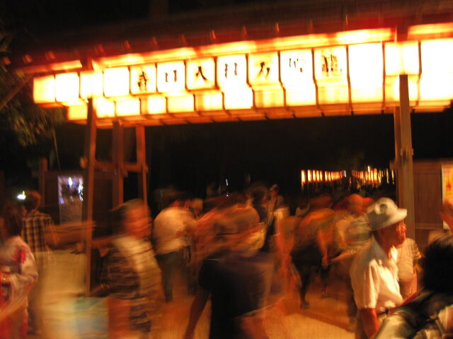 暗闇から一変、煌々と明るい社殿に着くと吸い込まれるように参拝者は入っていく。