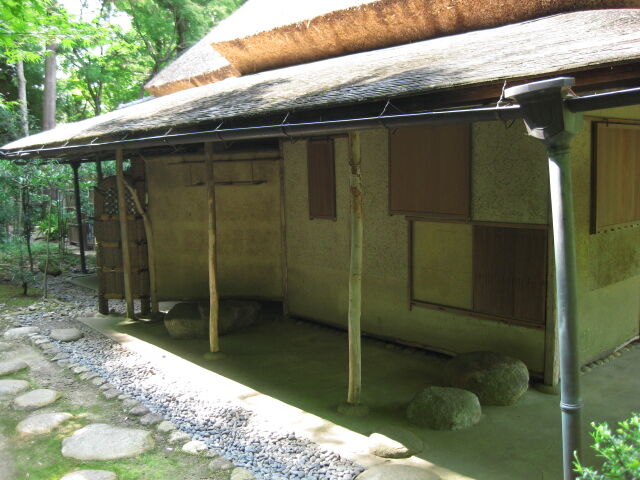 質素な茶室の南側、にじり口がある。