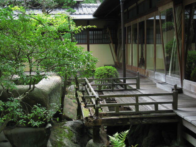 曲がりくねった小道、枝ぶりのいい庭木に感じ入る