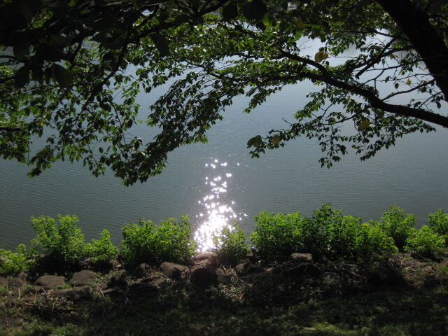 ちょうど荒池に来たときに太陽が水面を眩しく照らしたので一撮。