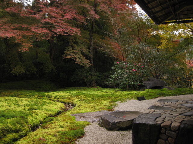 渡り廊下から右側、山門から玄関までの「山露路の庭」のあたりだろう
