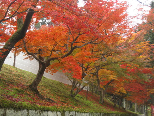 白壁に苔の緑、そして紅葉。