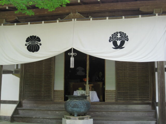 本堂に向かって右側にある聖天堂。元禄時代造営の建造物で、堂内には歓喜天が秘仏として祀られている。「瓶子(へいし)」と「違い大根」の紋が左右にある。