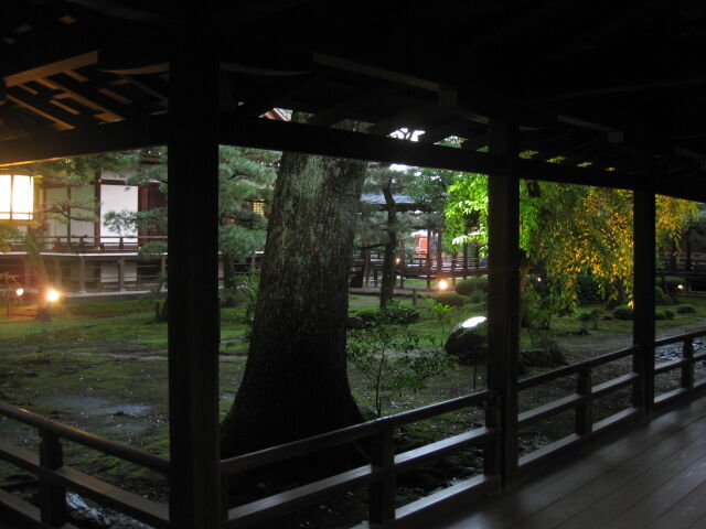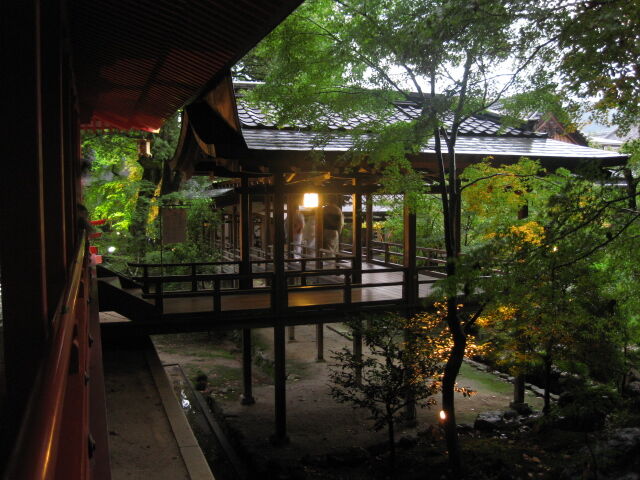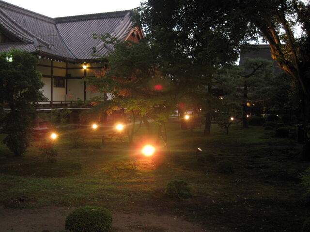 雨があがり、境内に明かりが灯る。非日常な空間だ