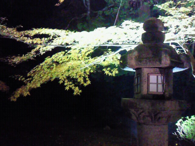 舞台から見下ろすライトアップされた紅葉