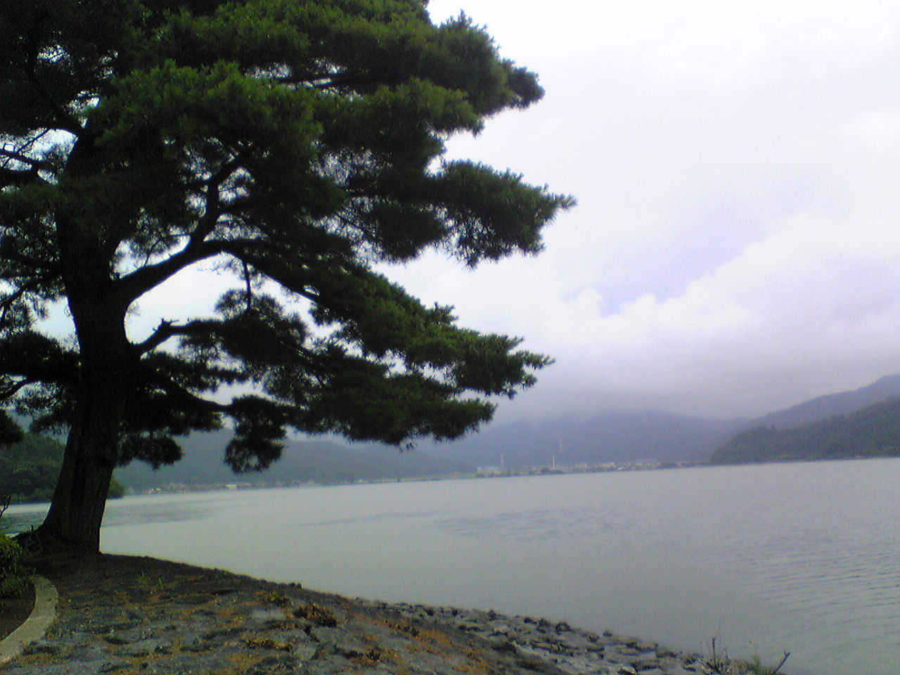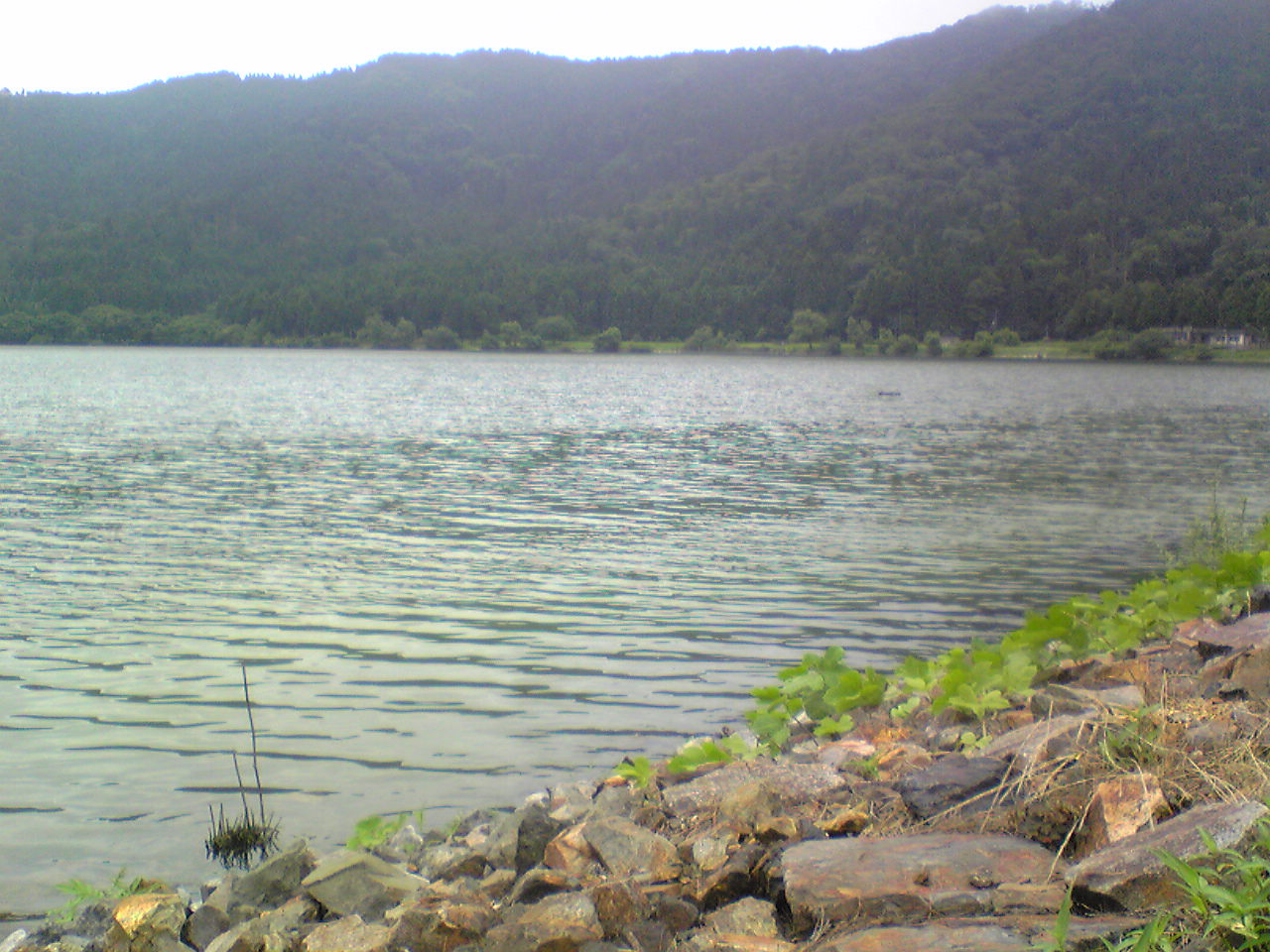 ちょうど7時のこの位置で観測することに。前方は山が湖面に迫る感じで美しい。