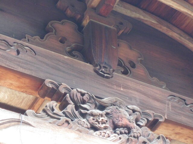 拝殿の上部の蟇股の彫り物は奇奇怪怪な生き物、獅子?