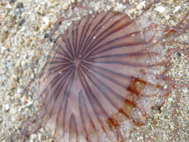 打ち上げられたくらげ。調べてみるとちょっと怖いか~ きれいだけど、こいつはさわったらだめだよ!