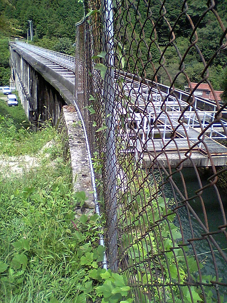 これは近くにある読書発電所への道水路で現存する戦前の水路橋の中では、最大級の規模らしい。橋の上を流れる水が見たくて橋の上まで上がって撮った写真。