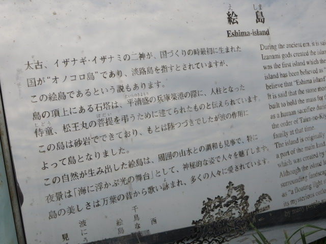 岩楠神社から歩くこと数分で絵島に、この絵島をおのころ島とする説もある。