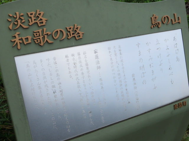 まず北淡路を三日間、そして二週間後に南淡路を二日間の計画。橋を降りて淡路島の北端岩屋からスタートする。いくらも走らないうちに鳥の山展望台の案内板があった。