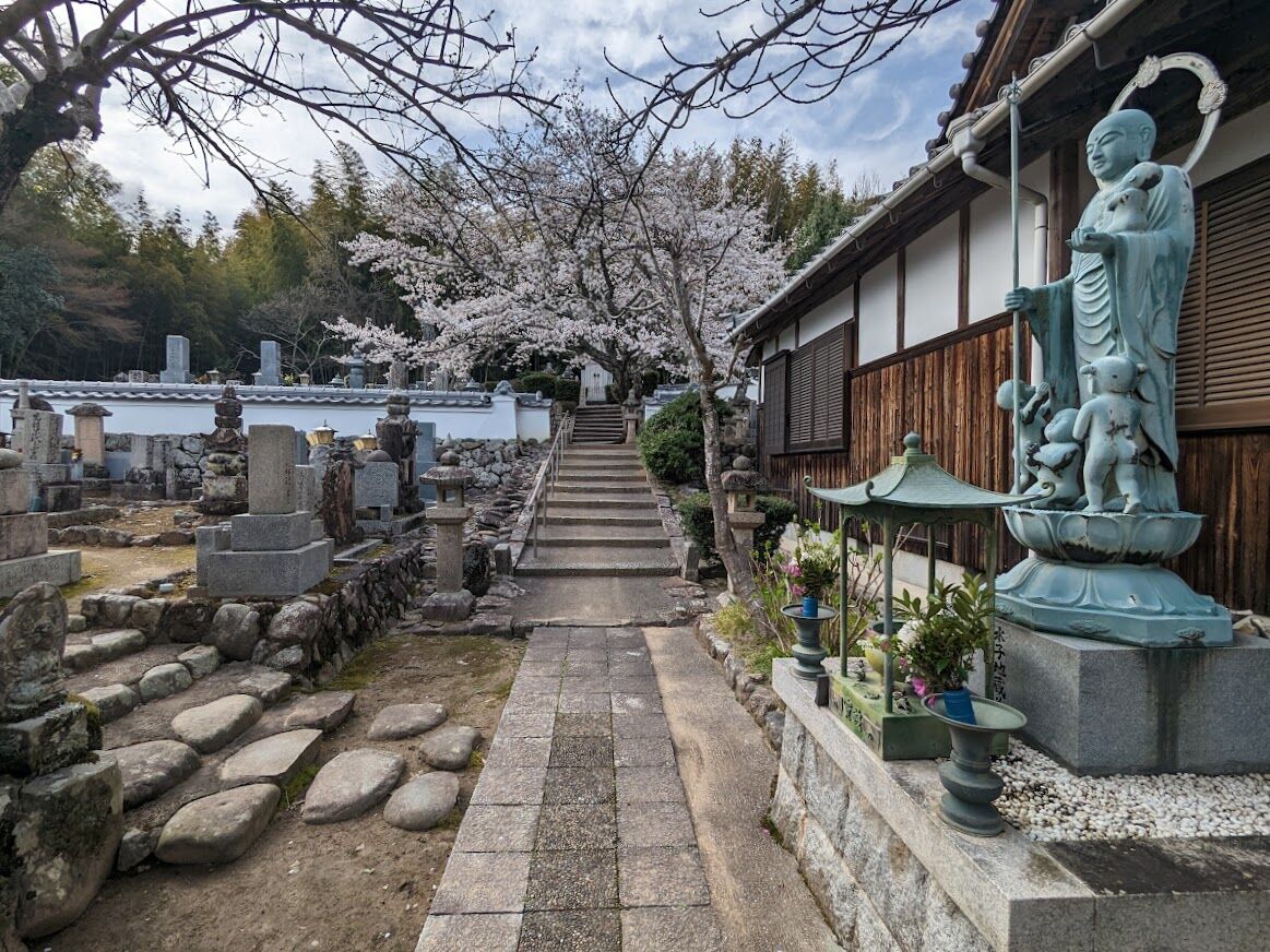 本堂の西側に墓地と水子地蔵、そして奥へと道が続く