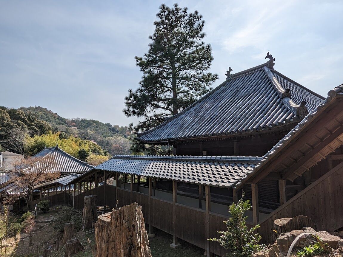 観音堂の後ろ姿、その前をよぎる回廊は本坊へと続いている
