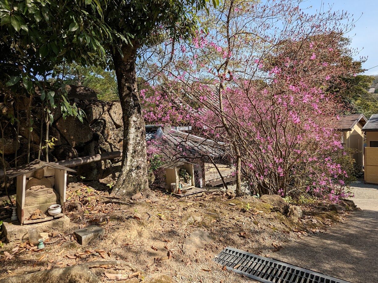 右手にピザ窯のある里山、左手は坂田金時の墓、そして四国八十八か所巡拝路