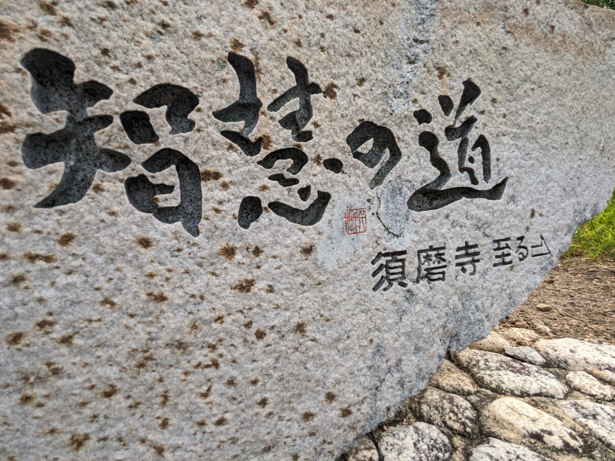 綱敷天満宮から須磨寺前商店街を通り、須磨寺までを結ぶ道です。 天神さんは、学問の神様の菅原道真、須磨寺は“いろは”を考案した弘法大師という「智慧」を持つ方をおまつりする社寺を結ぶことから名づけられました。毎年8月9日には「智慧の盆歌」に合わせて踊る「智慧の盆踊り」が行われています。また、須磨寺前商店街の北側にある大師広場の横に石造りの輪があり、智慧の輪「弘天さん」と呼ばれています。<須磨観光施設協議会より引用>
