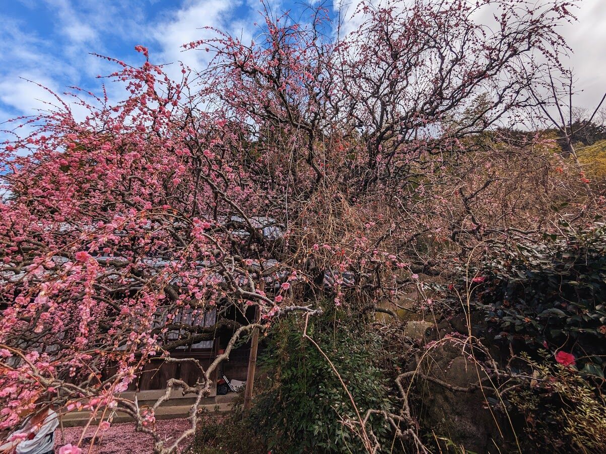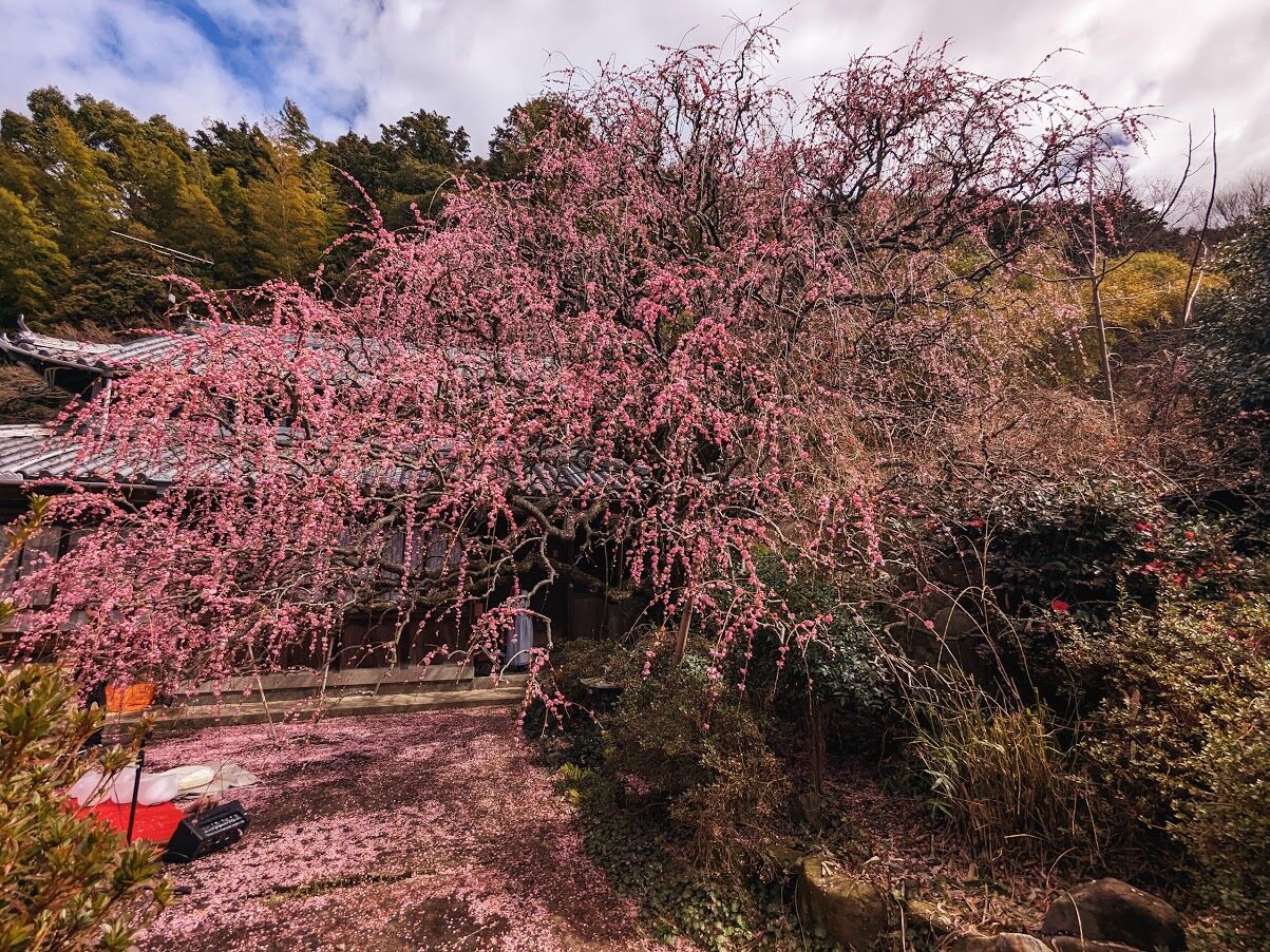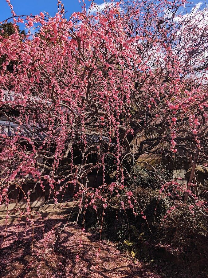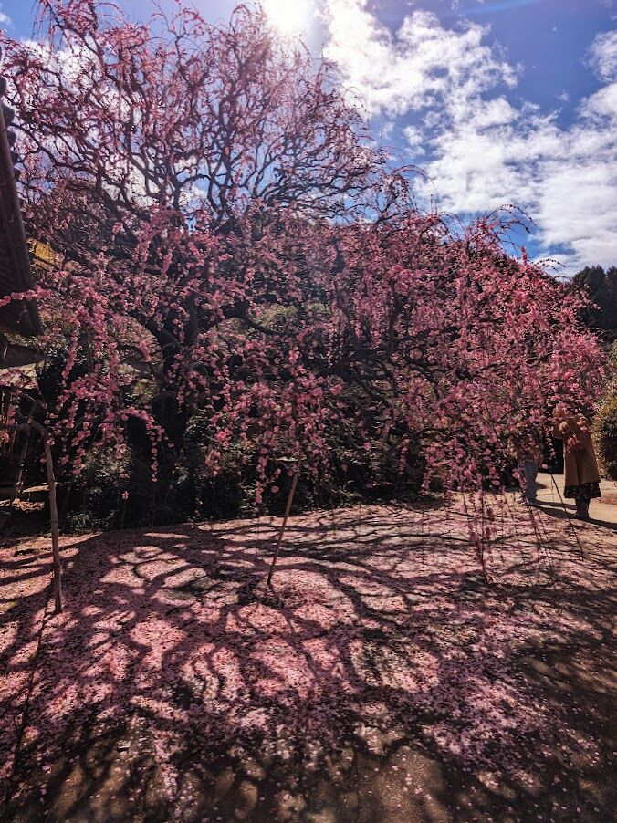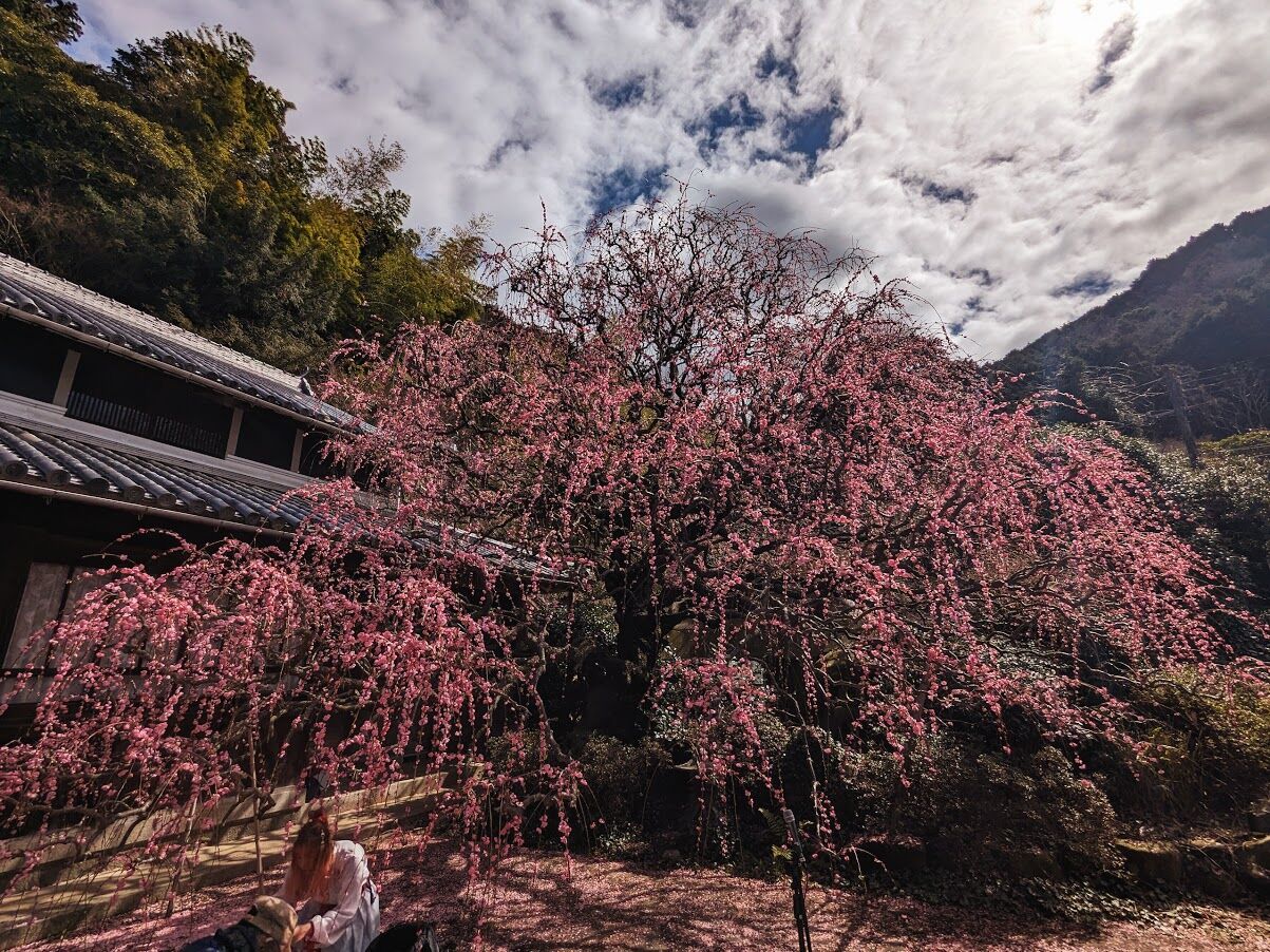 南あわじ市の八木のしだれ梅、色合い、枝ぶりと実に見事だった。