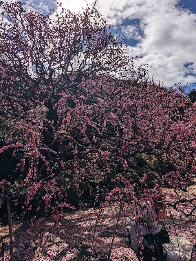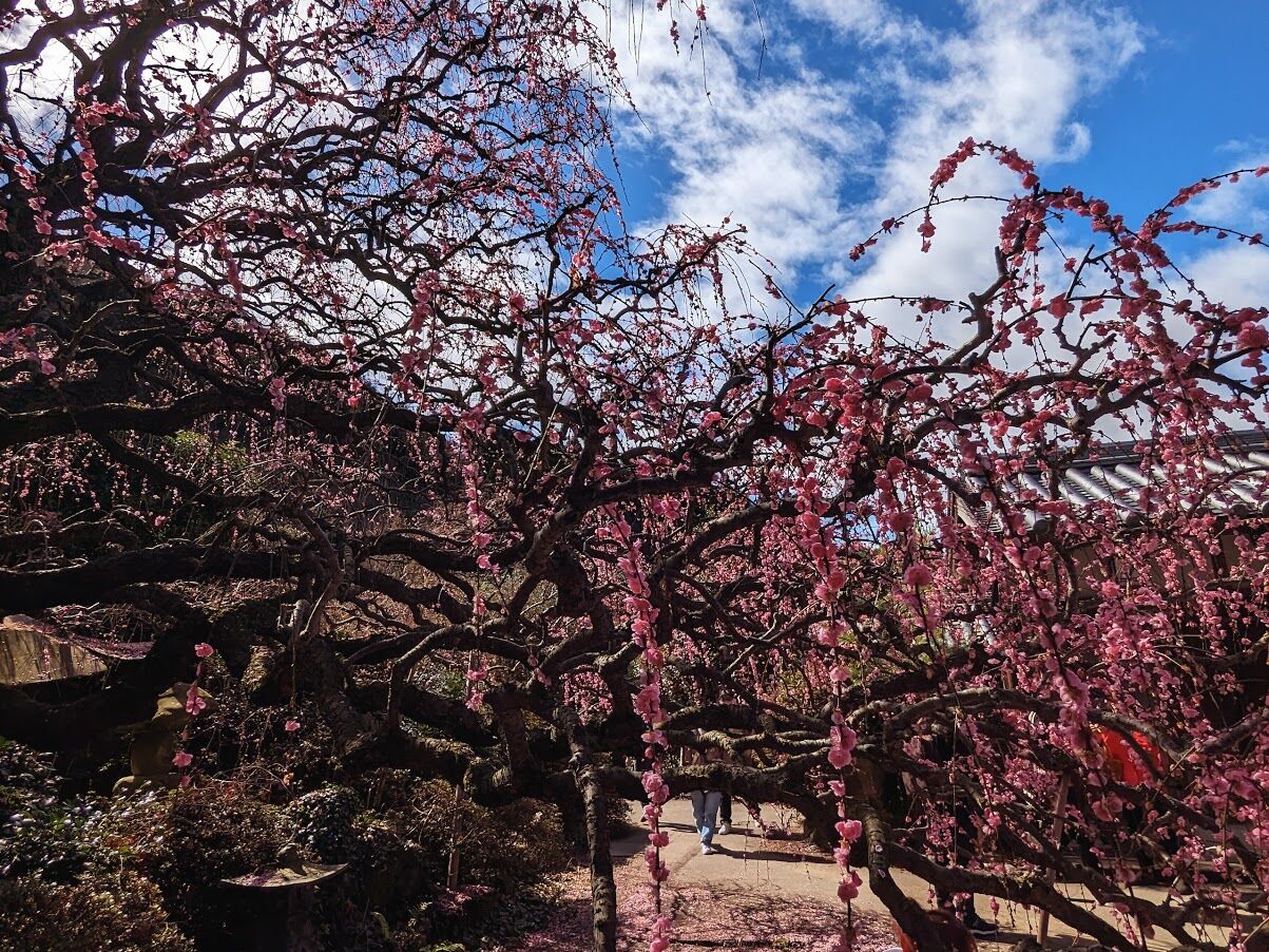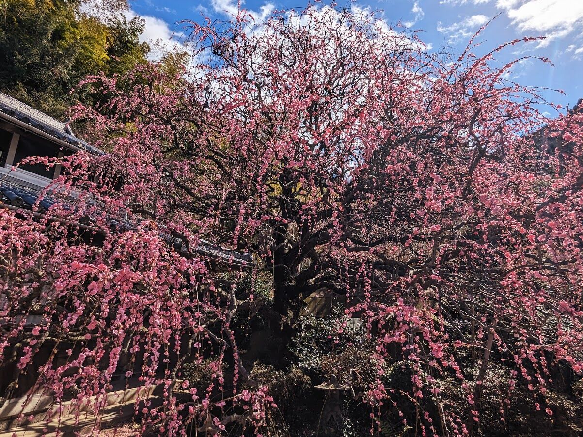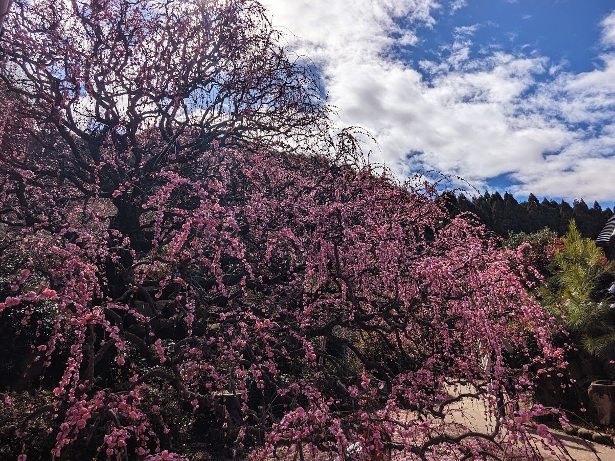 南あわじ市の八木のしだれ梅、色合い、枝ぶりと実に見事だった。