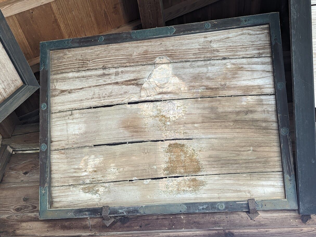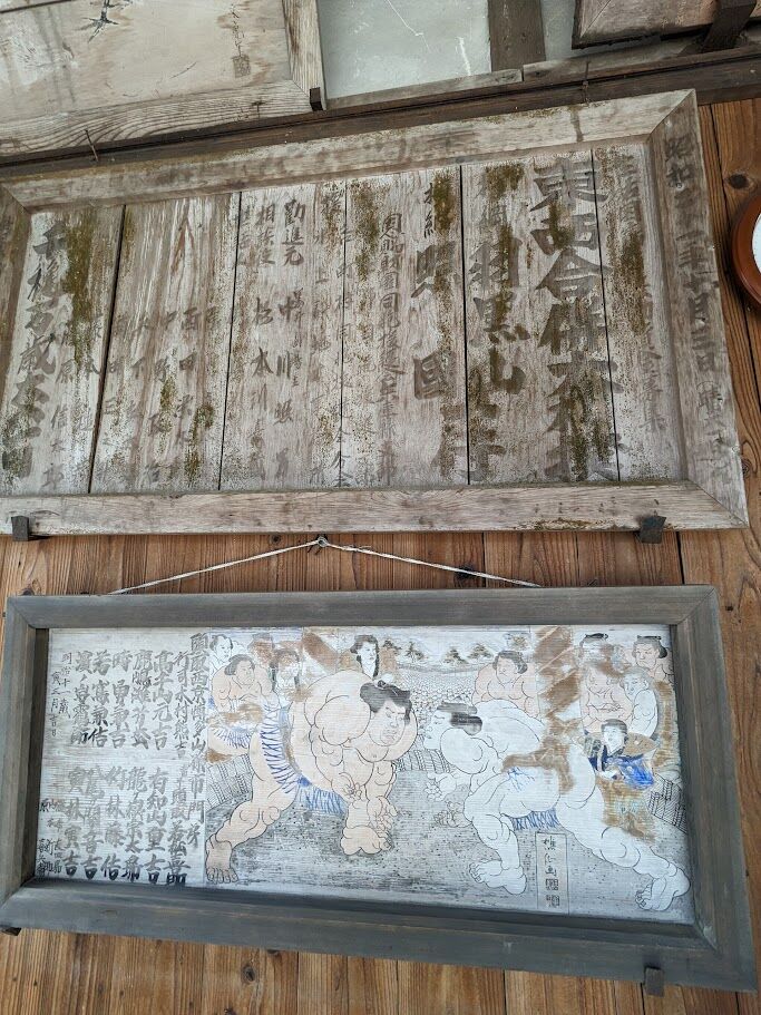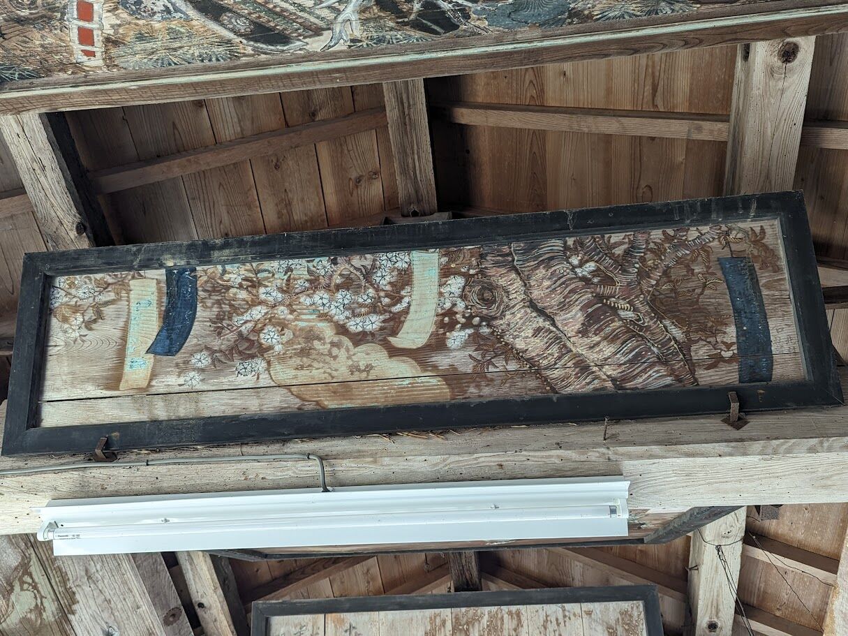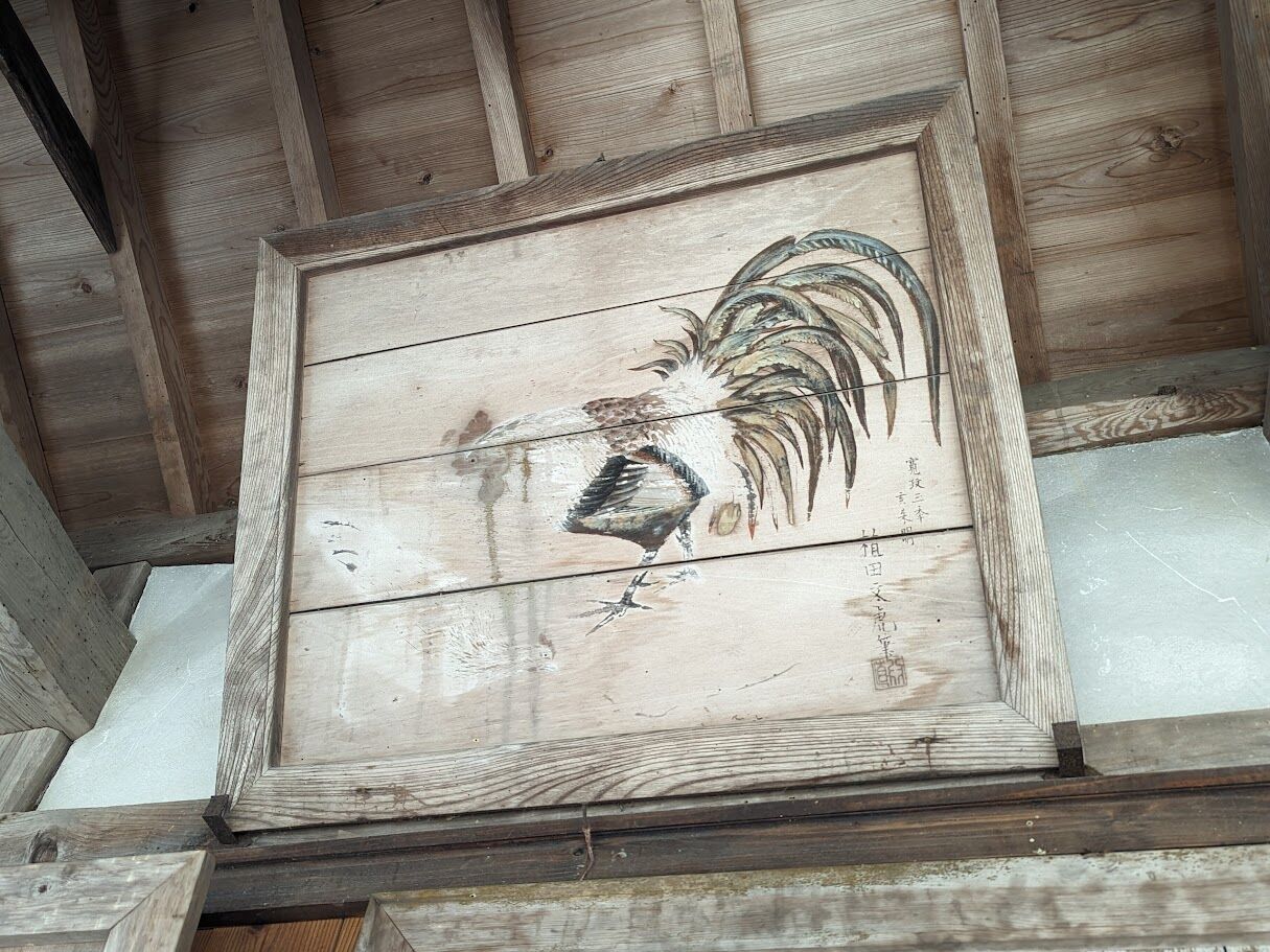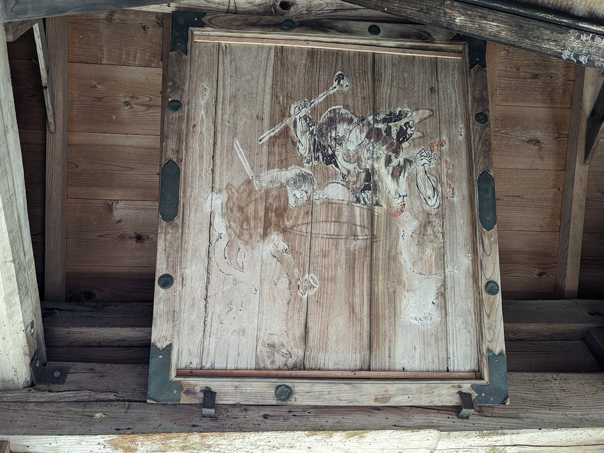 拝殿&本殿の西側、たくさんの絵や社史を物語る額がたっぷり。これがそれぞれの神社の個性をよく表す場所、いろいろと想像しながらじっくりと見るのがいい。