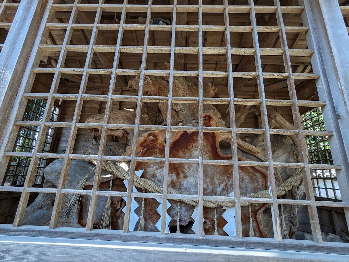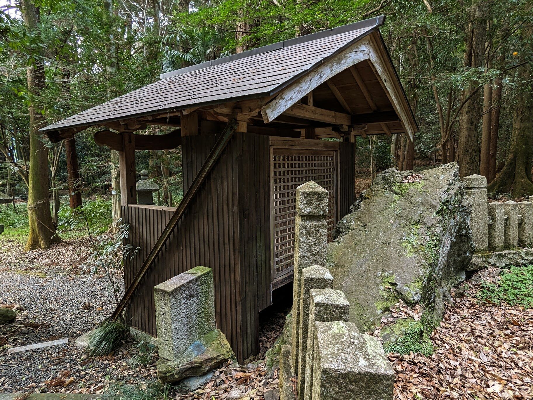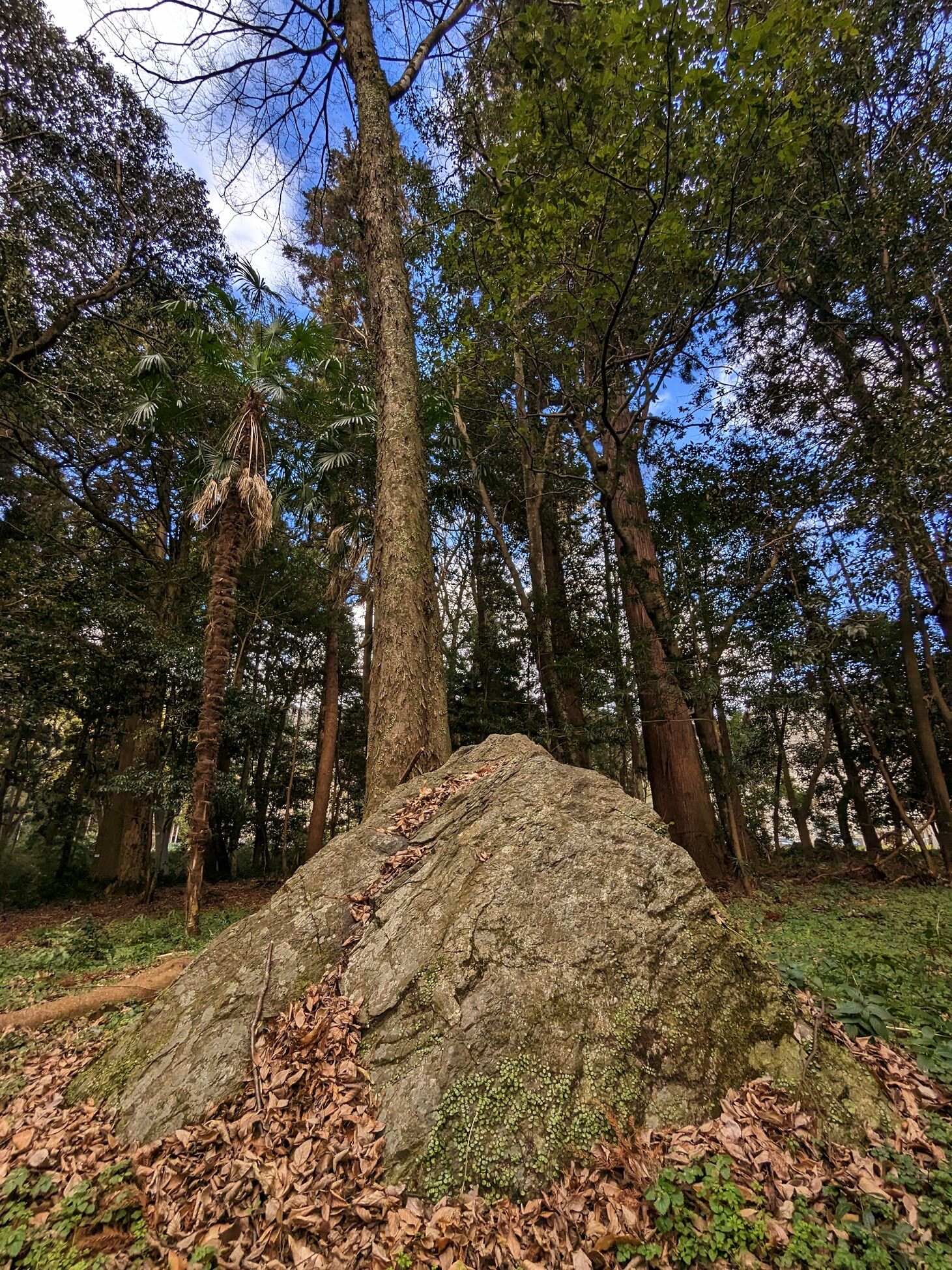 兵庫県史蹟名勝天然記念物の指定を受けた大欅樹/ケヤキの巨大な根っこが巨石をとりまいていたそうだが枯れてしまい磐座だけになっている