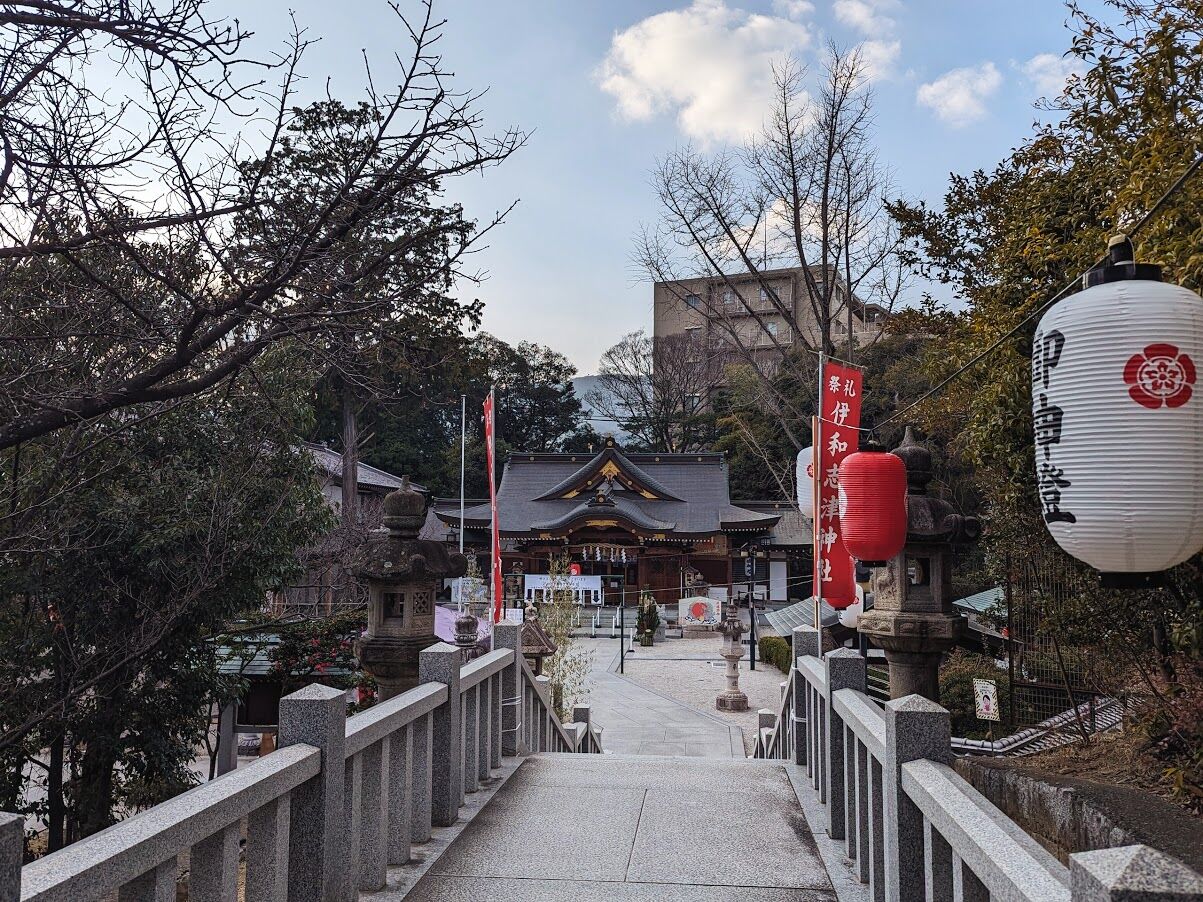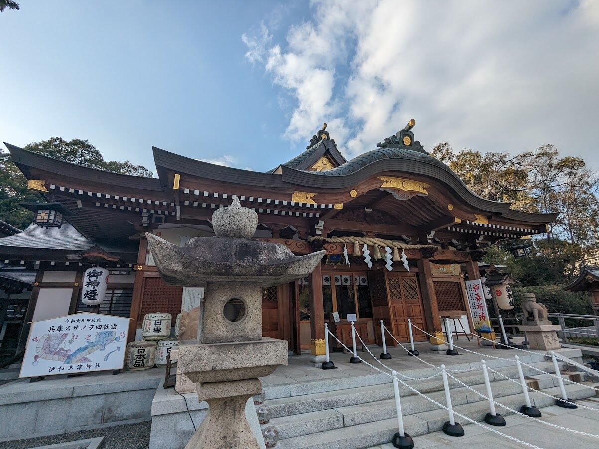 8世紀後半から伊蘇志臣/いそしのおみが拠点としていた地に立つ式内の大社。祭神は須佐之男命、宝塚随一の古社で、兵庫スサノオ四社のひとつ